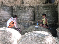 Bei den täglichen Arbeiten und sowie beim Silo fahren oder bei Heu und Stroh pressen - die Kinder dürfen gerne Platz auf dem Trecker nehmen und mitfahren. Der Spaß für jede Altergruppe. Bei schlechtem Wetter steht die große Strohhalle zum Bauen von Höhlen und Indoorspielen zur Verfügung. Da wir in absolut ruhiger Lage leben, haben Sie sehr viel Möglichkeiten in der Natur ausgiebige Spaziergänge zu unternehmen, Drachen steigen lassen auf unseren eigenen Wiesen, zu angeln oder einfach mal auf den Gartenmöbeln zu relaxen. Und wenn Sie mal nichts unternehmen möchten so steht Ihnen ein Gartenhaus mit Grill zur Verfügung. Lagerfeuer, Grill- und Funabende (z.B. ca. 70 cm Gyrospfanne) werden bei uns in und außerhalb der Grillhütte gefeiert.